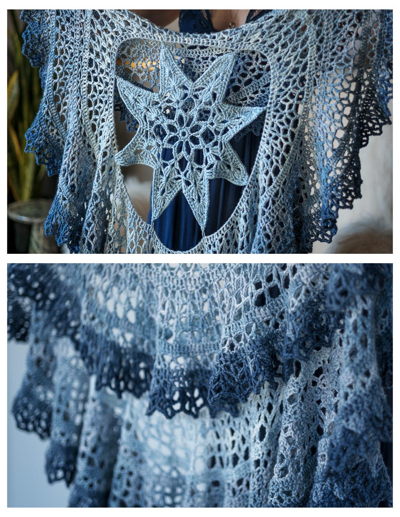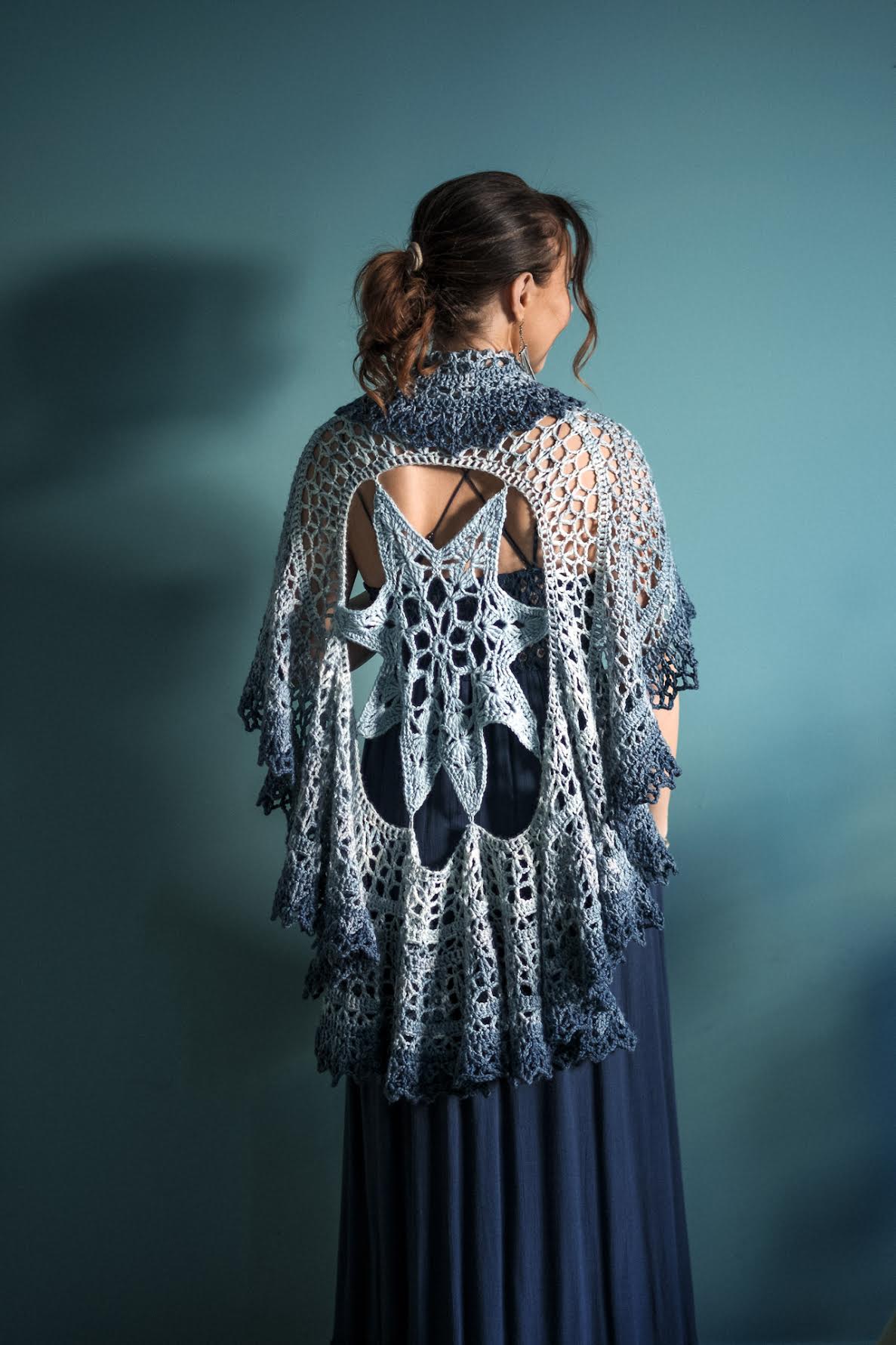 Polaris was designed by Elisabeth Carr. When asked about her pattern, Elisabeth said, “Polaris is a circular shawl inspired by the North Star. The North Star has been brightening the night sky and giving direction to explorers for millennia, and I hope this shawl helps to bring a little brightness to your life. Crocheted in the round, the design is worked from the center out, creating the star first.”